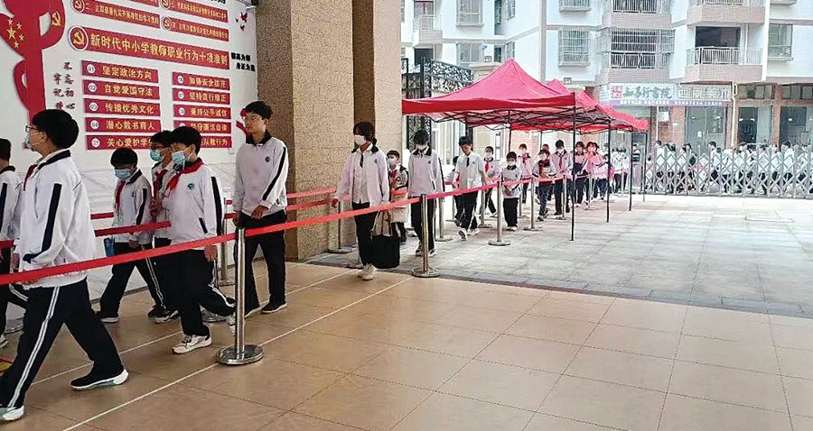 大亞灣區(qū)開學(xué)首日,學(xué)生有序進入校園。
