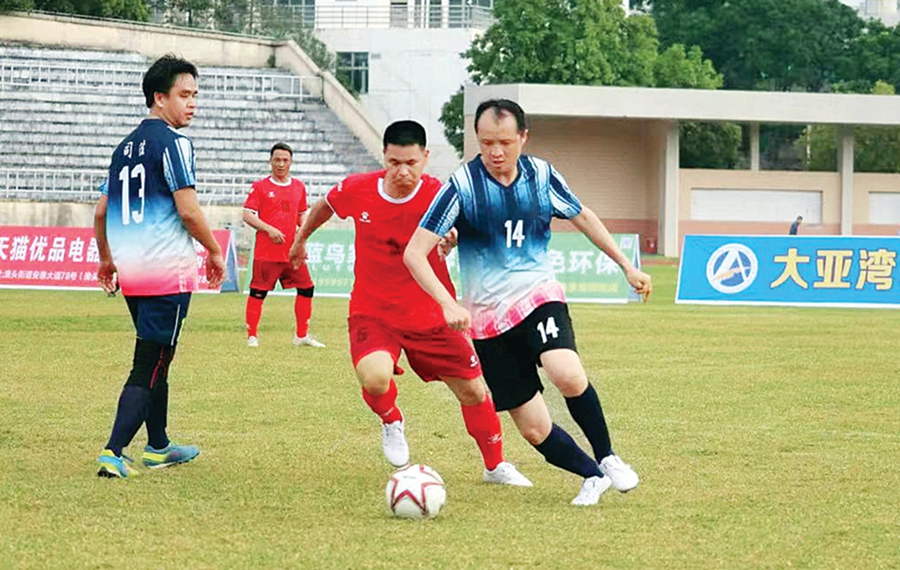 球員們在綠茵場上奮力奔跑。惠州日報記者黃旭新 通訊員黃運超 攝