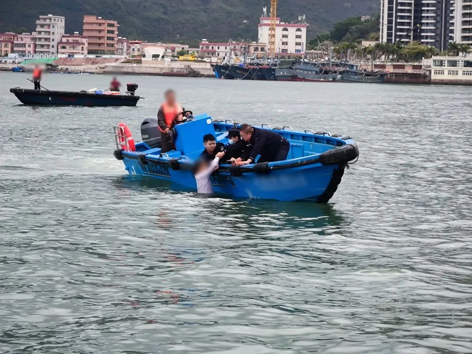 到達(dá)現(xiàn)場后,值班民警發(fā)現(xiàn)一名男子他正搖搖晃晃走向海中去。情況緊急,值班民警立即乘船向男子方向追趕、呼喊:“停下來,有什么事情我們可以慢慢聊一下,不要想不開!”,危急時(shí)刻,澳頭派出所值班民警快速到達(dá)該男子落水點(diǎn),奮力將其拉回船上。