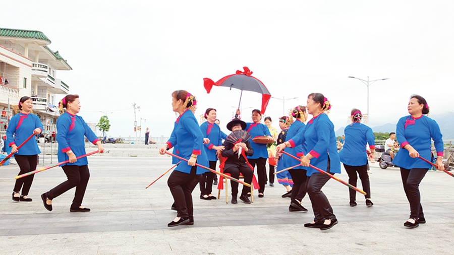 東升村是一個(gè)四面環(huán)海的海島漁村,擁有豐厚的漁家傳統(tǒng)文化,其漁家婚嫁習(xí)俗是廣東省非物質(zhì)文化遺產(chǎn)保護(hù)項(xiàng)目,一年一度的大王爺節(jié)是市級(jí)非物質(zhì)文化遺產(chǎn)項(xiàng)目。近年來(lái),東升村黨支部積極打造東升村特色文化站,組建“東升漁歌歌舞隊(duì)”,啟動(dòng)“東升漁女”漁家文化傳承及創(chuàng)收賦能提升項(xiàng)目,將漁家歌舞表演搬到了網(wǎng)絡(luò)直播間,掀起了一股弘揚(yáng)東升漁家文化的熱潮。東升漁家文化在傳承與創(chuàng)新中煥發(fā)新活力。