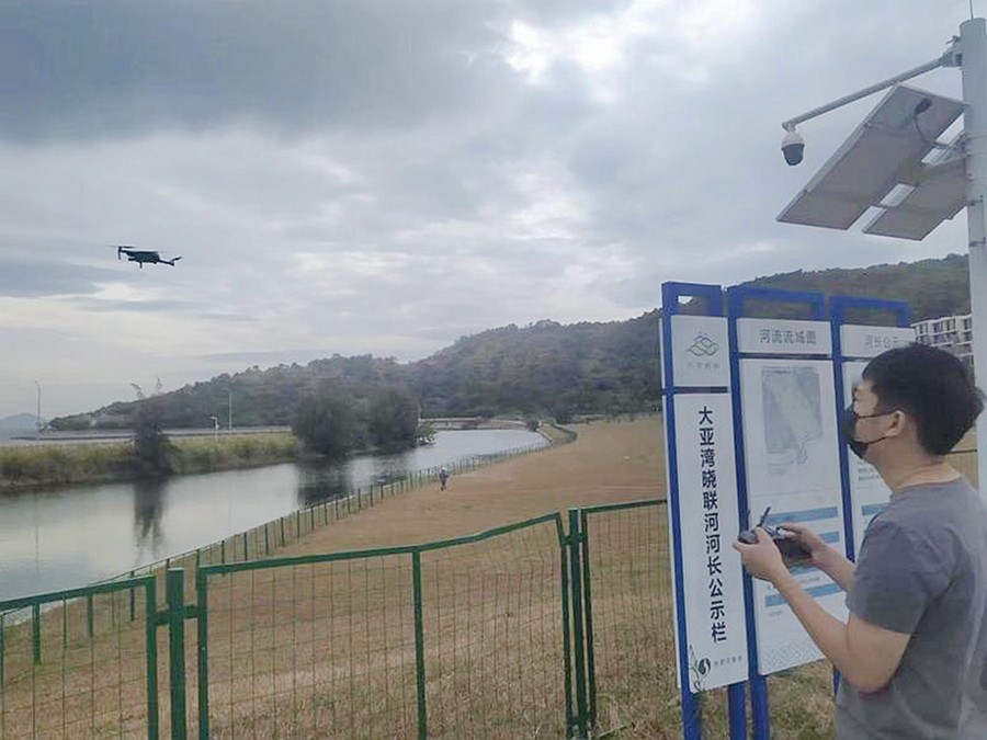 無(wú)人機(jī)巡河。惠州日?qǐng)?bào)記者匡湘鄂 通訊員陳志敏 攝