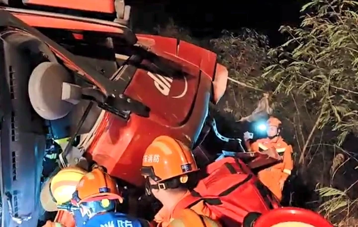 12月24日21時17分,大亞灣荃灣消防救援站接到一起警情:澳頭街道S30惠深沿海高速大亞灣出口有大貨車側(cè)翻,一人被困。荃灣消防救援站消防員立即前往處置,21時26分到達(dá)現(xiàn)場后,消防指戰(zhàn)員立即進(jìn)行偵查,發(fā)現(xiàn)一輛裝滿泥土半掛車側(cè)翻在高速出口轉(zhuǎn)彎處,車頭嚴(yán)重變形,一名司機(jī)被困在里面,司機(jī)精神狀態(tài)良好,無生命危險。