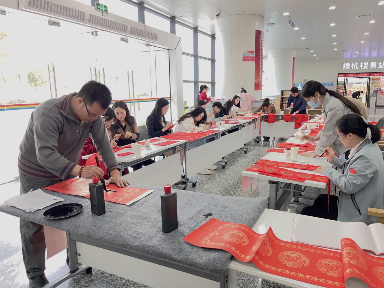 丹紙鋪就,翰墨飄香。活動中,中國青年美術(shù)家協(xié)會會員、廣東省中國畫協(xié)會會員、惠陽區(qū)硬筆書法家協(xié)會秘書長陳劍現(xiàn)場指導(dǎo)大家書寫春聯(lián)。在場的黨員、群眾在老師的指導(dǎo)下?lián)]毫潑墨,一副副春聯(lián)、一張張福字飽含著迎接新春的喜悅。“我還是喜歡手寫的春聯(lián),既有墨香,更有年味。”捧著自己心儀的春聯(lián)和福字,職工蔡女士的喜悅之情溢于言表。