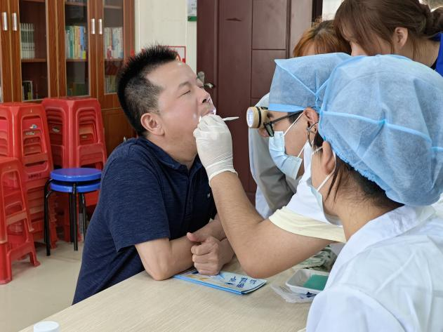 鄉(xiāng)韻弘醫(yī)隊隊員為村民檢查口腔。惠州日報記者曾靜妍 攝