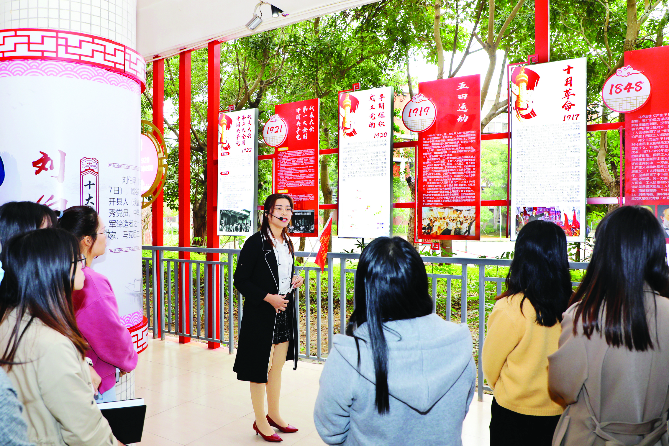 “我們設(shè)計了‘手牌+地標’的沉浸式學習模式。”該校相關(guān)負責人介紹,學校定期推出黨史主題手牌,通過逛街、打卡“長廊地標”等形式激發(fā)學生的參與感、互動感。在此基礎(chǔ)上,學校還成立了“紅色思政講堂”黨小組,以講座的形式對全校學生進行授課。當前,“紅色思政講堂”一周開展一次,授課講師通過“寓宣教于故事”的形式,為學生講述中國共產(chǎn)黨人物、惠州紅色文化、抗美援朝等相關(guān)主題內(nèi)容。