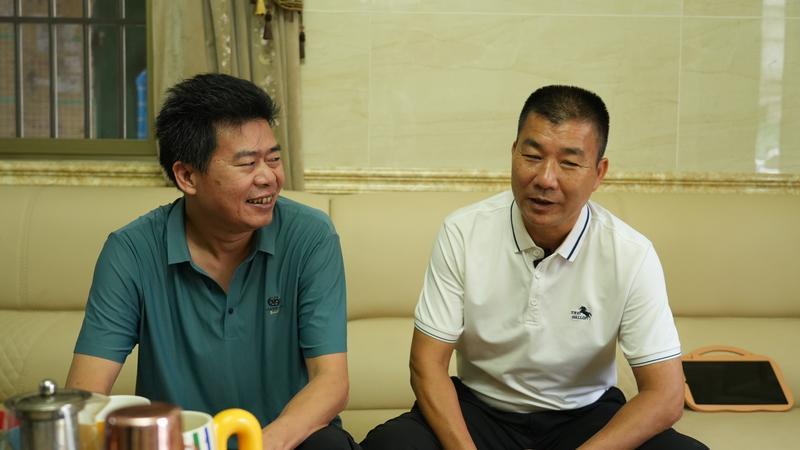 黃振忠(右)入戶和村民交流。惠州日?qǐng)?bào)記者湯渝杭 攝