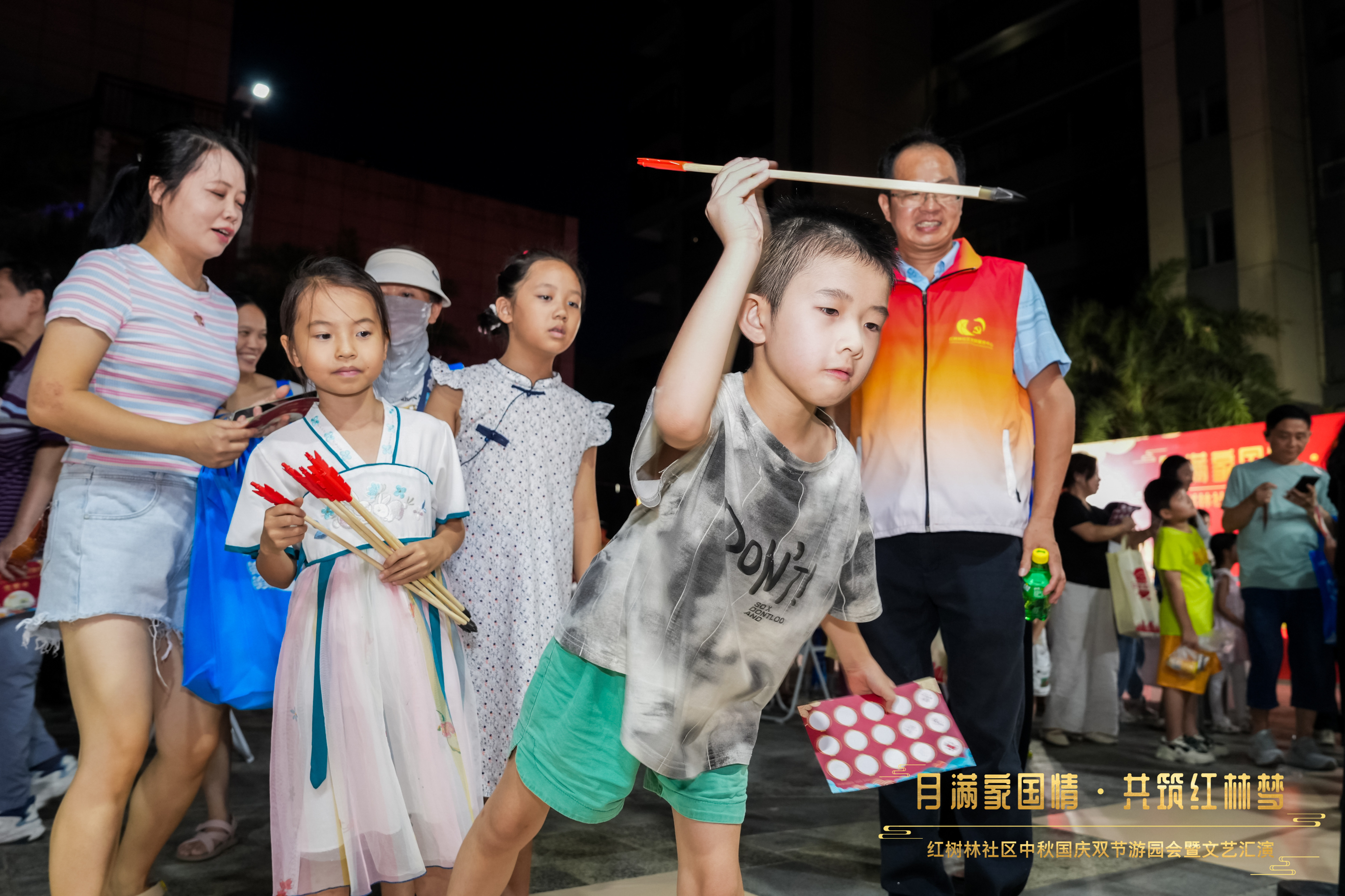 中秋佳節(jié),眾多社區(qū)也紛紛策劃了豐富的活動(dòng),為居民們帶來別樣的節(jié)日體驗(yàn)。10月1日,澳頭紅樹林社區(qū)黨群服務(wù)中心外圍廣場熱鬧非凡,一場以“月滿家國情·共筑紅林夢”為主題的中秋國慶“雙節(jié)”游園會(huì)暨文藝匯演在此精彩上演。游園會(huì)以“集章兌禮”為線索,設(shè)置多個(gè)主題區(qū)域:“皓月謎光閣”燈謎高懸,眾人競猜;“穿云射禮坊”投壺?zé)狒[,喝彩不斷;“巧手繪月區(qū)”親子繪燈,期許團(tuán)圓;“鳴鼓邀月臺”蒙眼擊鼓,氣氛熱烈;漢服打卡、公共服務(wù)區(qū)各具特色。