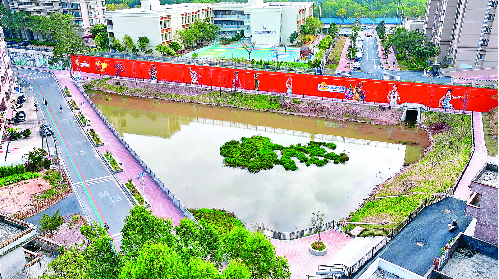 鄉(xiāng)村的邊角地也在悄然變身。在澳頭街道大涌村,道路入口經(jīng)過環(huán)境提升后平坦整潔,兩側(cè)新栽的朱纓花開得正艷,令人賞心悅目。池塘及周邊經(jīng)過清淤、綠化和墻繪,變成風(fēng)景宜人的親水空間。居民常先生點贊道:“我家住在池塘前面,以前環(huán)境比較亂,路也不好走,現(xiàn)在出門就是風(fēng)景,路好走多了。”
