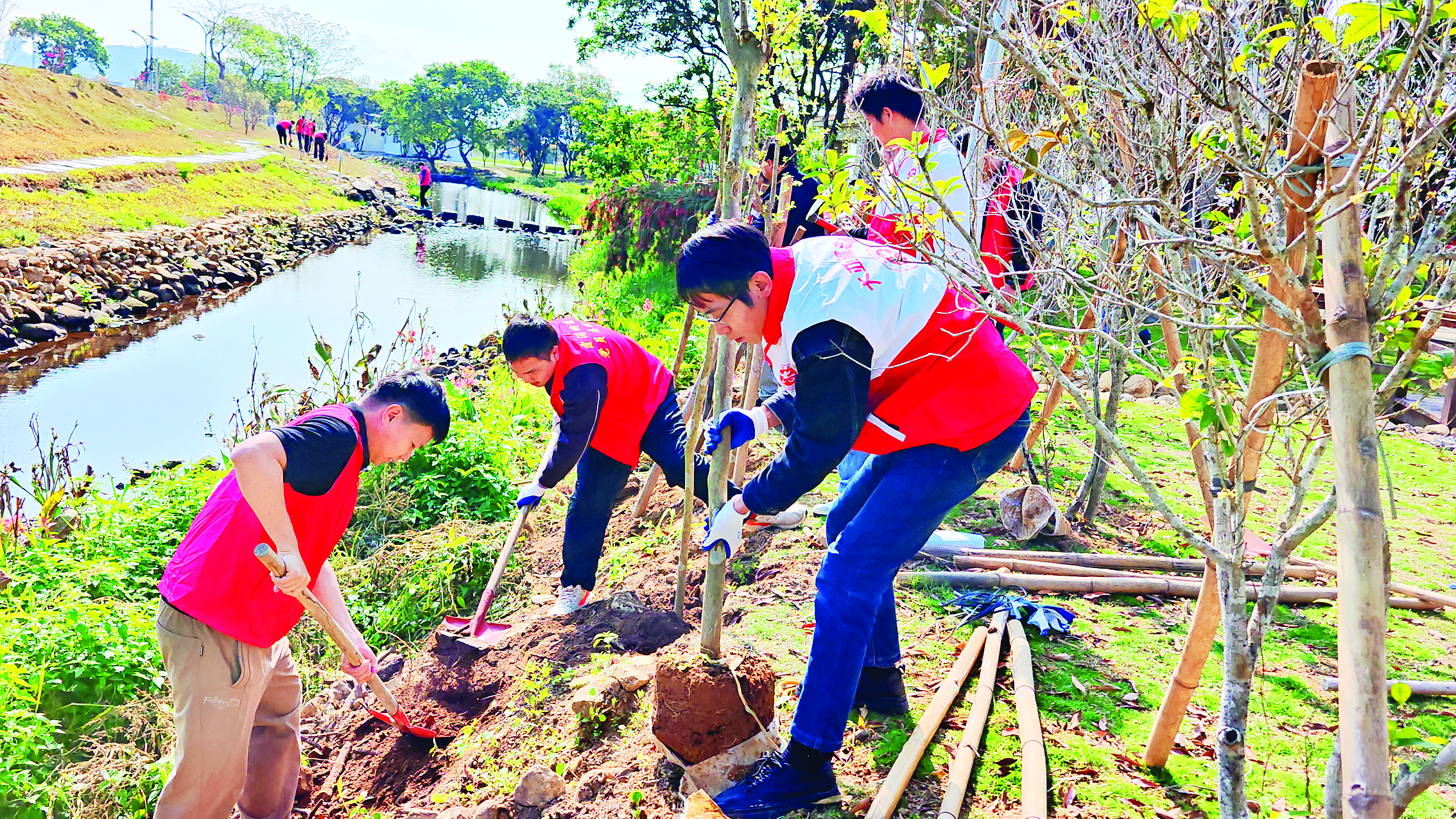 春風(fēng)送暖,萬物勃發(fā)。3月11日,大亞灣霞涌街道鄉(xiāng)村綠化主題植樹活動(dòng)在上角村“千畝方”山海稻香田園項(xiàng)目綠美熱科農(nóng)場青龍河畔舉行。大家三五成群、分工協(xié)作,現(xiàn)場一片熱火朝天的勞動(dòng)景象。歡聲笑語間,一株株小葉紫薇迎風(fēng)挺立,為河畔增添了勃勃生機(jī)。