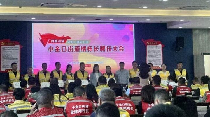 日前,小金口街道召開樓棟長(zhǎng)聘任大會(huì),街道黨工委委員、辦事處副主任張玲玲為11名樓棟長(zhǎng)代表頒發(fā)了聘任書,各網(wǎng)格長(zhǎng)和樓棟長(zhǎng)代表共180人參加了會(huì)議。