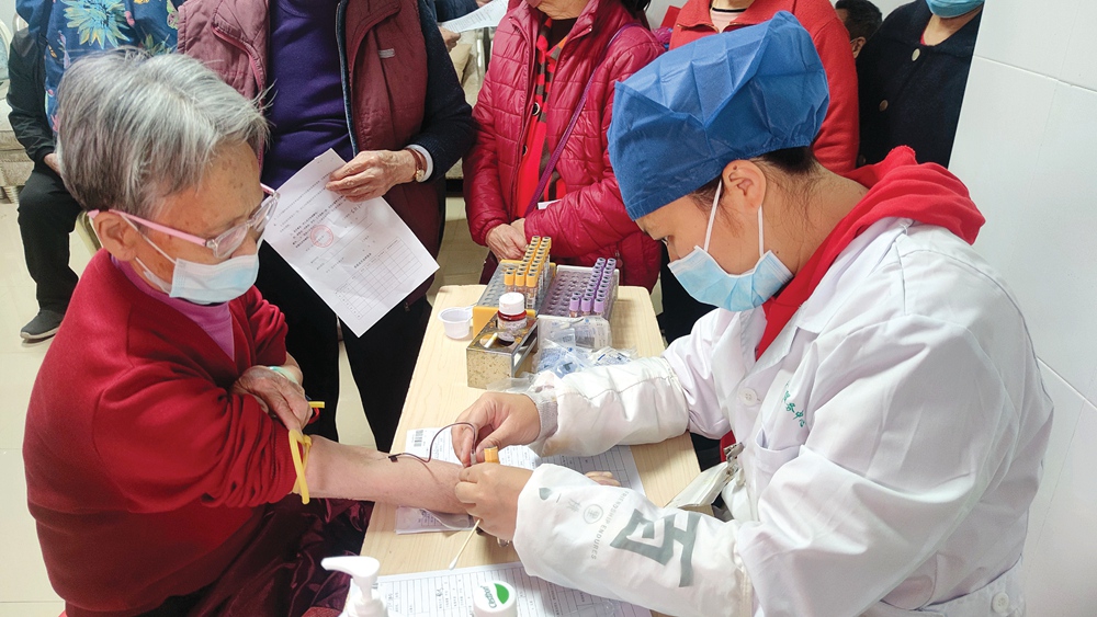 3月8日上午8時(shí),住在東江學(xué)府小區(qū)的長(zhǎng)者陸續(xù)下樓參加免費(fèi)體檢。記者在現(xiàn)場(chǎng)看到,體檢項(xiàng)目包括測(cè)量血壓,血常規(guī)、血脂和血糖檢測(cè)等,還有心電圖和B超檢查,近10名穿著紅馬甲的黨員,在現(xiàn)場(chǎng)協(xié)助做好資料登記、維持秩序等工作,引導(dǎo)老人有序進(jìn)行體檢。“老人家下樓就可以享受免費(fèi)體檢,不用到醫(yī)院排隊(duì)等候,很方便,住在這里感覺(jué)很幸福。”社區(qū)居民肖維珍說(shuō)。