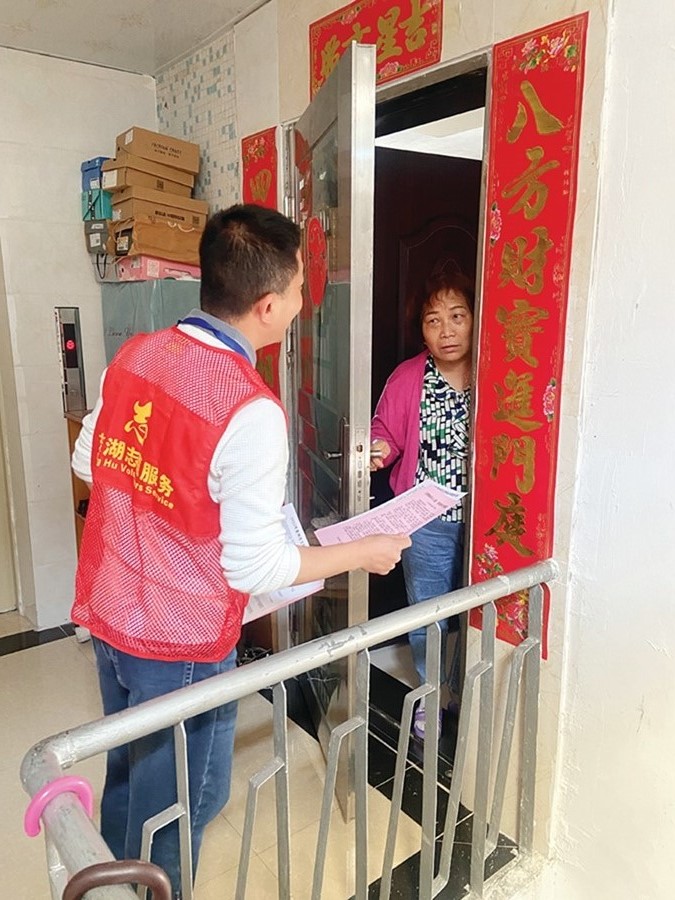 東湖社區(qū)“積分銀行”為志愿者服務(wù)加油。