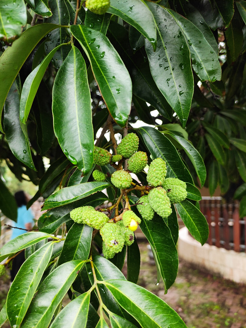 古荔枝樹依然枝葉依然茂盛,枝頭掛滿果實。