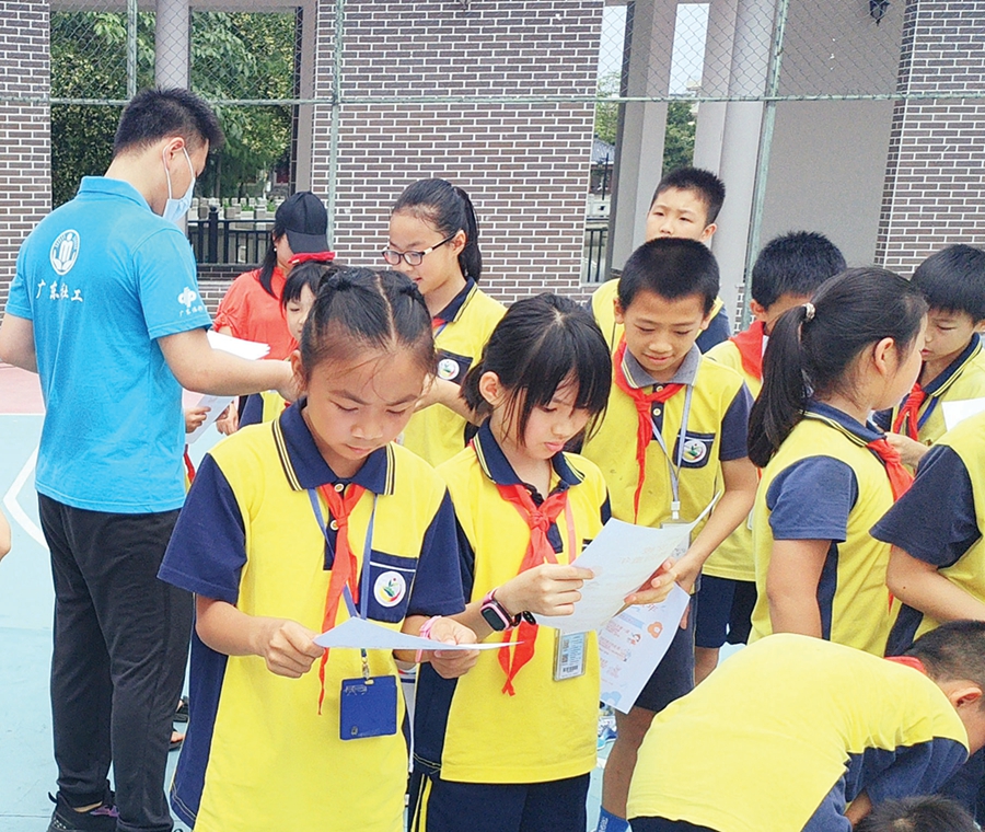 學(xué)生在閱讀宣傳資料。 惠州日?qǐng)?bào)記者彭紅霞 通訊員廖燕芳 攝