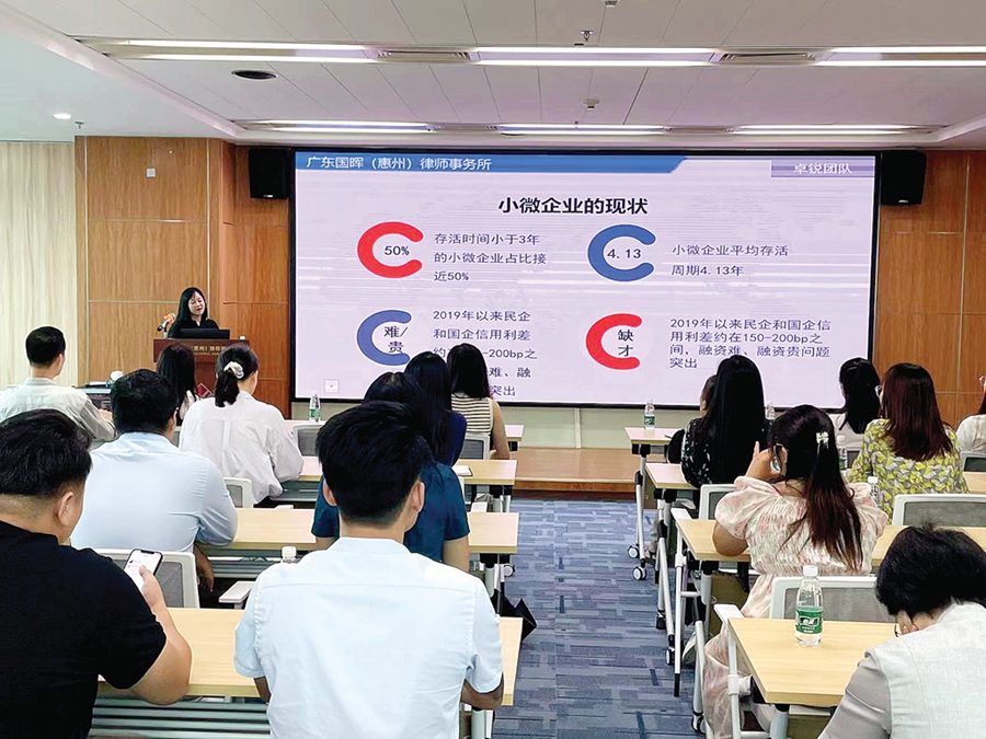 惠州日報訊 (記者彭紅霞 通訊員陳晨芳)日前,有企業(yè)向江北街道CBD樓宇企業(yè)服務站提出,經(jīng)營過程中遇到一些法律問題需要咨詢。針對企業(yè)的需求,服務站工作人員通過走訪調研、分析研判,聯(lián)系有相關需求的企業(yè)30余家,特邀廣東國暉(惠州)律師事務所專職律師為大家答疑解惑。9月8日上午,一場以“小微企業(yè)如何避免常見法律糾紛”為主題的法律知識講座在華貿大廈舉行。