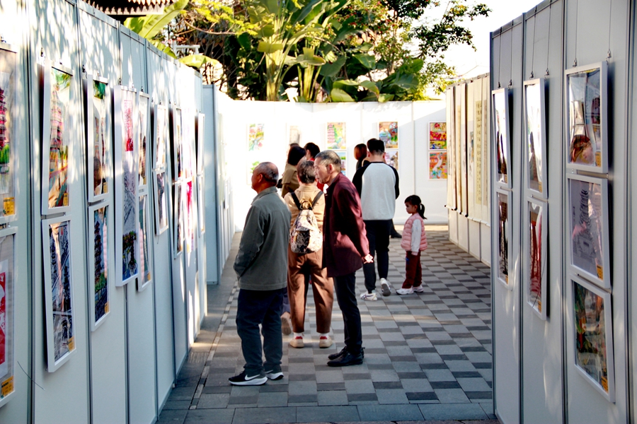 惠州日?qǐng)?bào)訊 (記者葉文青 特約通訊員周文媚 通訊員林曉娜)經(jīng)過(guò)2個(gè)多月的精心籌備,2023年12月29日上午,惠城區(qū)首屆“書寫橋東、畫說(shuō)東坡”中小學(xué)生書畫比賽展在東坡祠入門廣場(chǎng)展出及進(jìn)行頒獎(jiǎng)。活動(dòng)一共收集了1653幅書畫作品,經(jīng)過(guò)專家評(píng)委選出200幅精品集中展出,其中有68幅作品獲獎(jiǎng)。