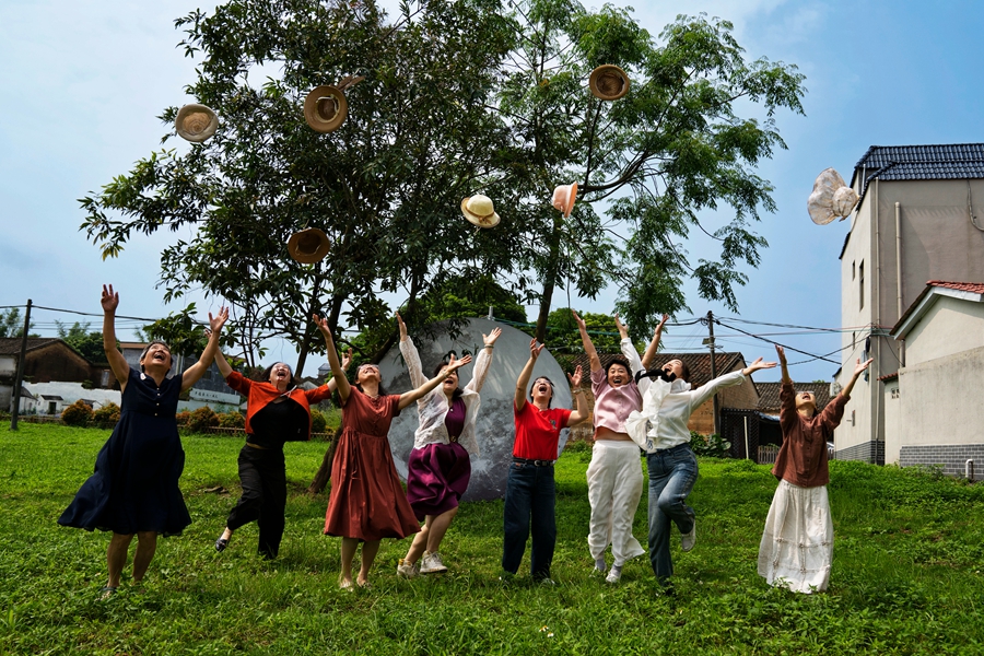 團(tuán)友們?cè)谀珗@村合影。 黃翠琴 攝