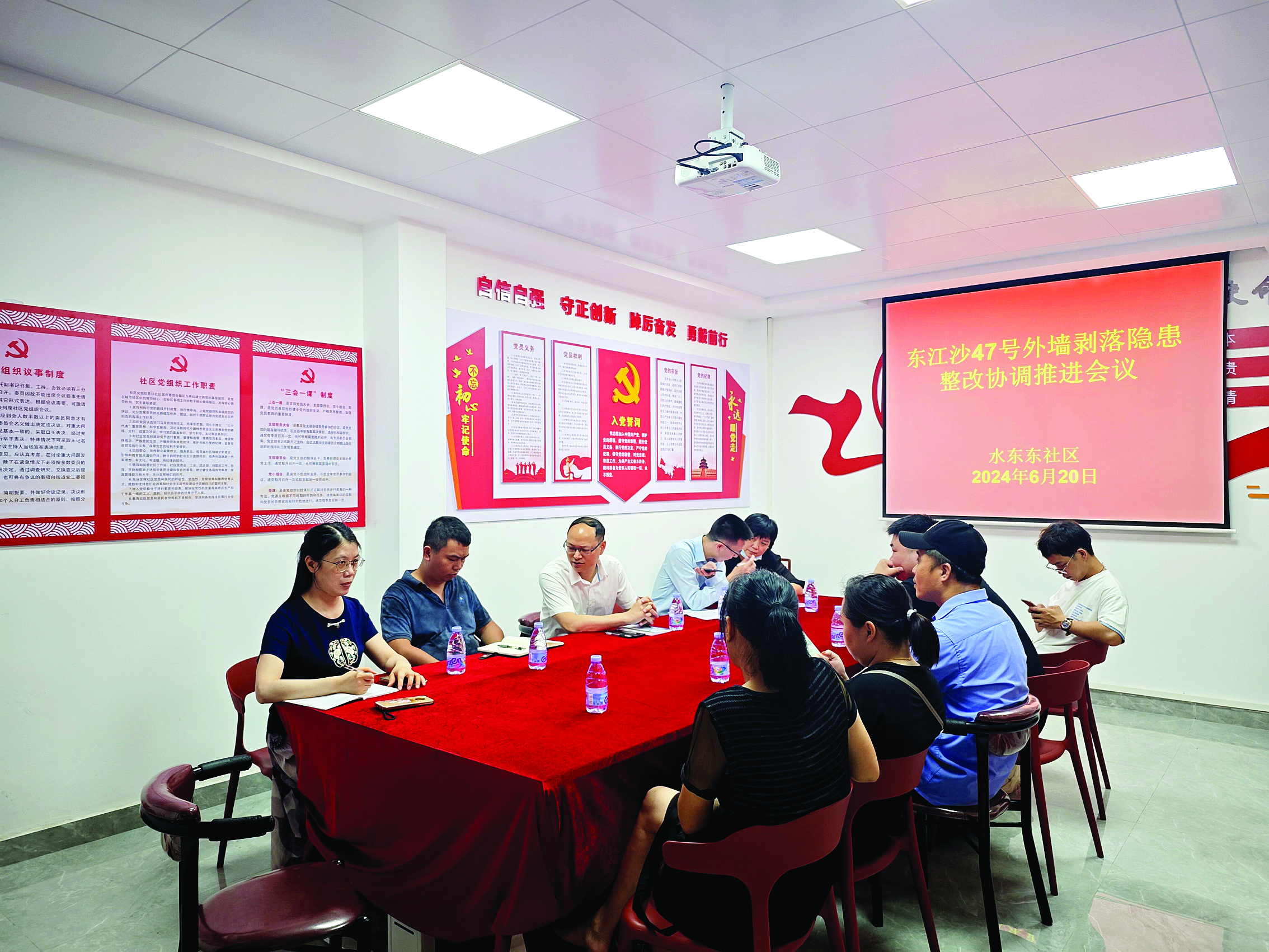水東東社區(qū)黨委召集東江沙47號樓棟業(yè)主和住戶召開協(xié)調(diào)會議。