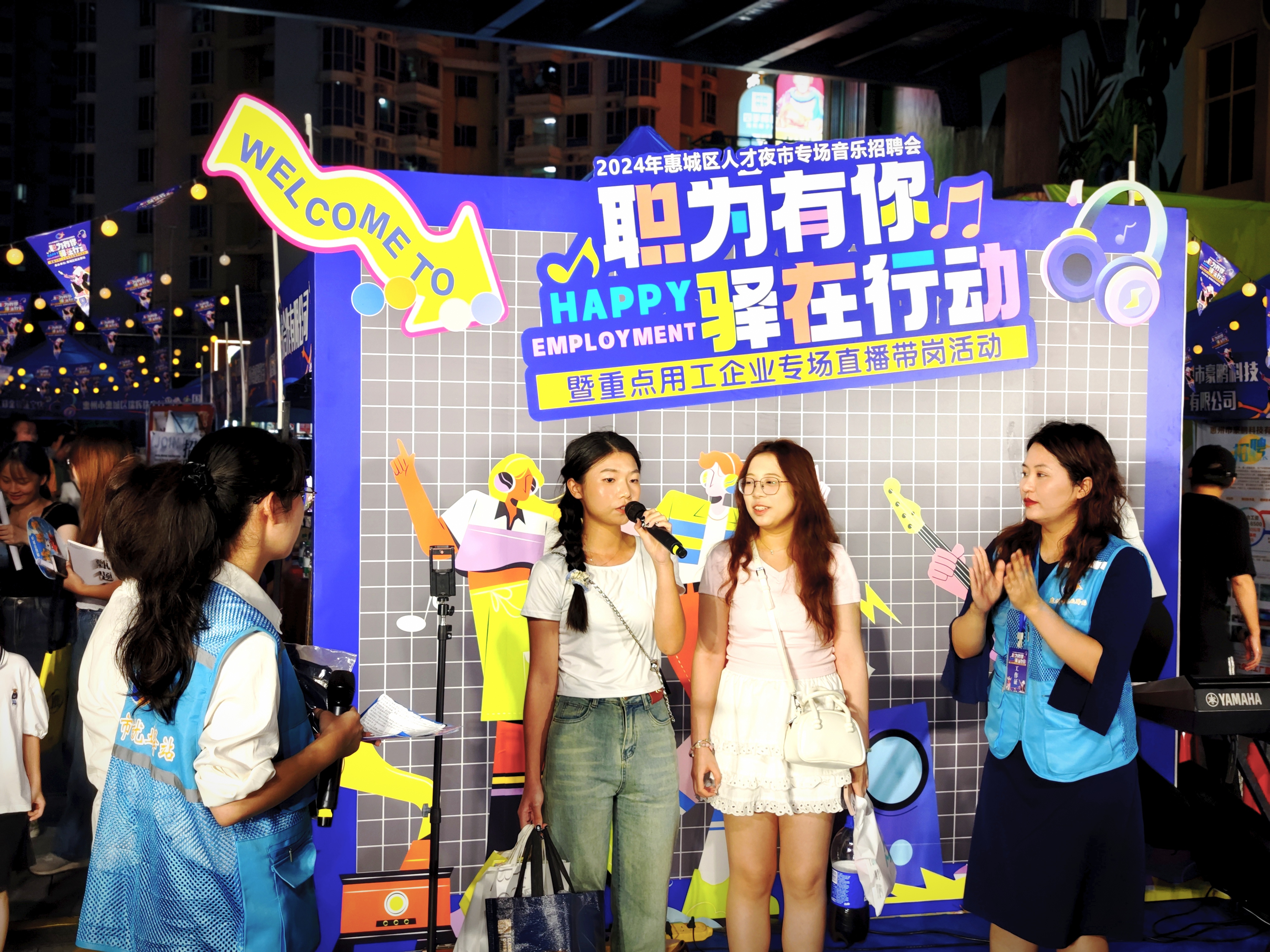惠州日報(bào)訊 (記者葉文青 通訊員魏碧夫)招聘現(xiàn)場,燈光璀璨,人潮涌動(dòng),求職者與HR熱情交流,AI互動(dòng)大屏和便捷的掃碼服務(wù)讓整個(gè)招聘過程互動(dòng)體驗(yàn)感拉滿……近日,惠城區(qū)在港惠西區(qū)一座前門中心廣場舉辦“職為有你,驛在行動(dòng)”人才夜市專場音樂招聘會(huì)暨重點(diǎn)用工企業(yè)專場直播帶崗活動(dòng),網(wǎng)絡(luò)招聘會(huì)將持續(xù)到8月31日。