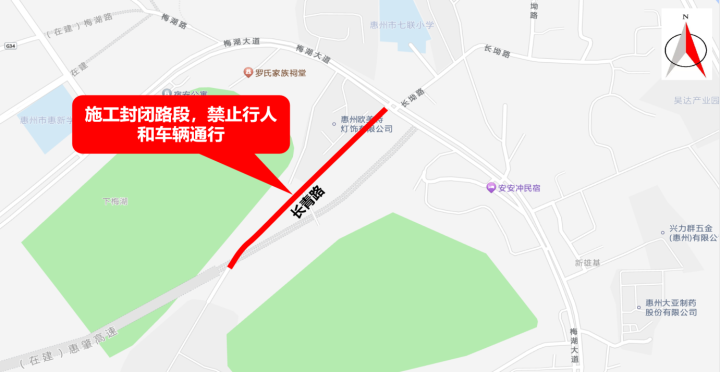 惠城區(qū)江南街道長青路雙向交通封閉,
