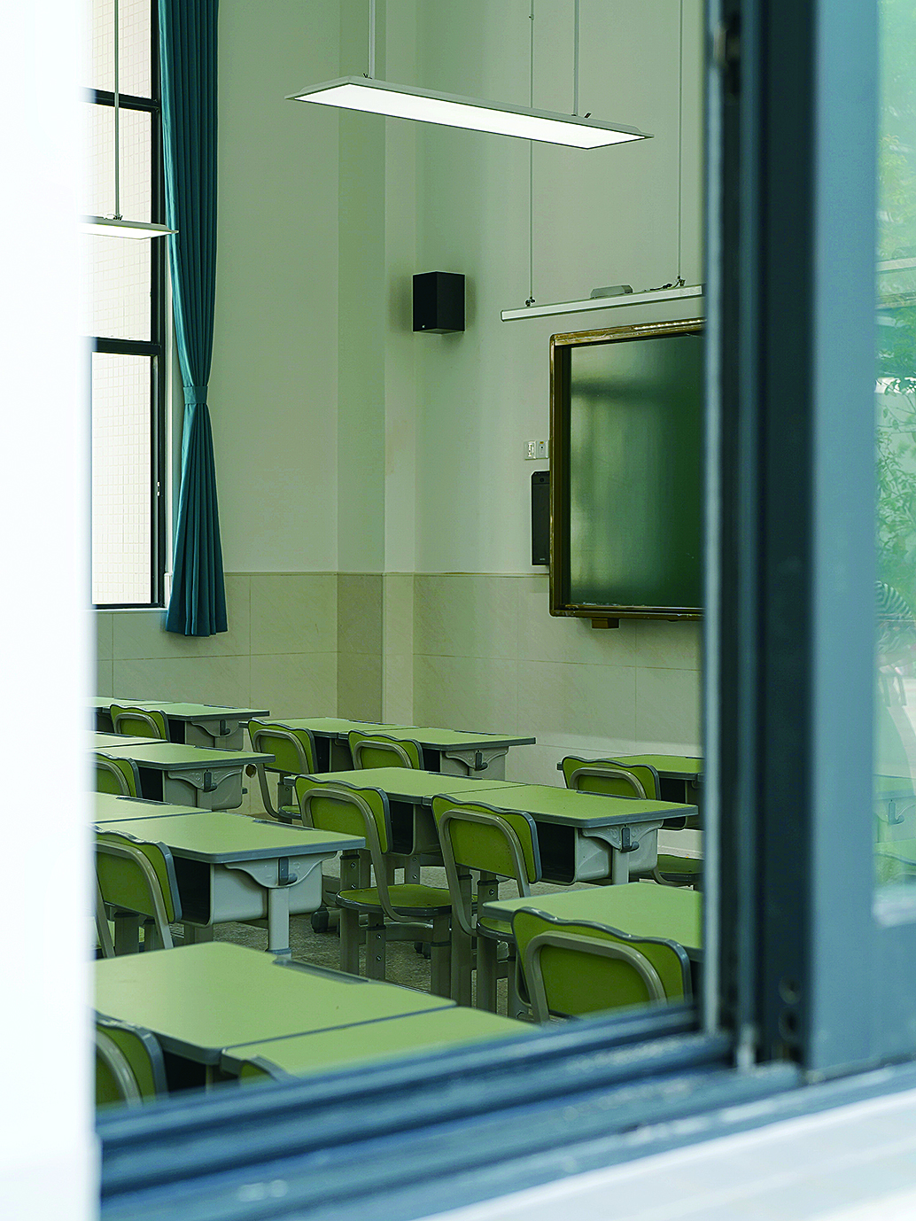 走進(jìn)鹿鳴學(xué)校,記者注意到,學(xué)校校園綠意盎然,環(huán)境優(yōu)美。建筑設(shè)計人性化,5棟教學(xué)樓錯落有致,風(fēng)雨連廊貫穿其間,確保師生通行無阻。學(xué)校除了配置標(biāo)準(zhǔn)400米環(huán)形塑膠跑道的大型戶外操場、籃球場,還有設(shè)有游泳池的獨棟體育館,為學(xué)生們提供了廣闊的運動空間。寬敞明亮的教室,淡綠色的課桌椅擺放整齊,觸控教學(xué)一體機(jī)、LED護(hù)眼燈等硬件設(shè)施一應(yīng)俱全。