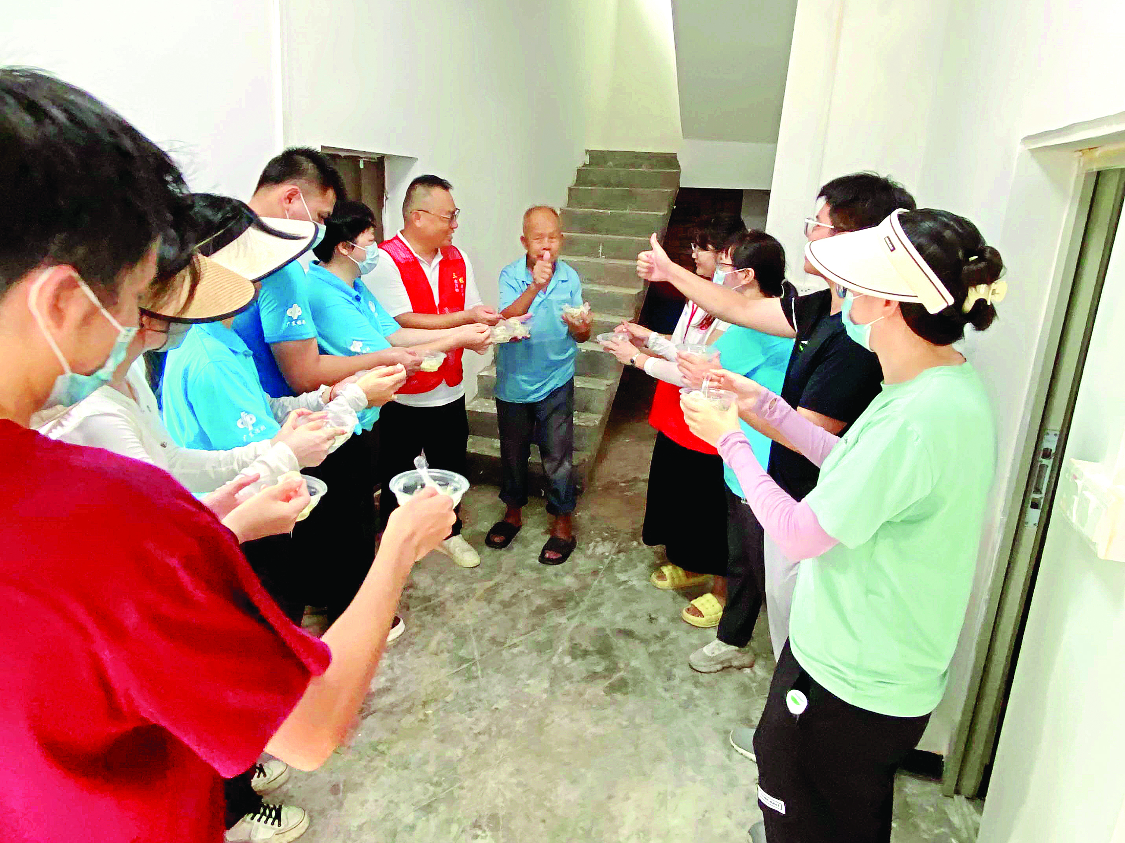 大家和張叔一起吃餃子,慶祝他入住新家。 本組圖片 惠州日?qǐng)?bào)記者彭紅霞 通訊員陳子韜 李美仙 攝