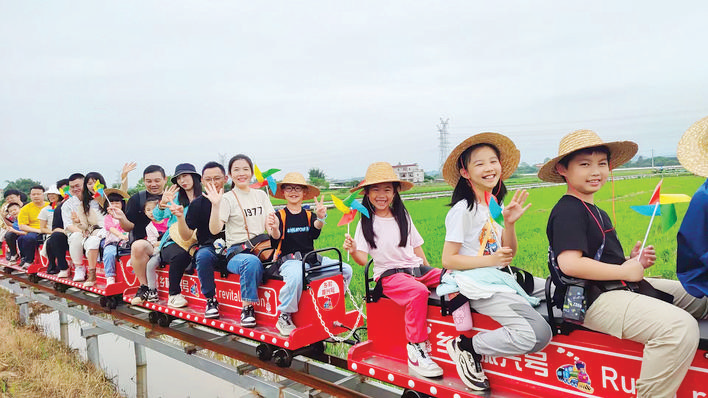 橫瀝農(nóng)文旅融合發(fā)展,吸引游客入村體驗(yàn)。這是墨園村稻田小火車。