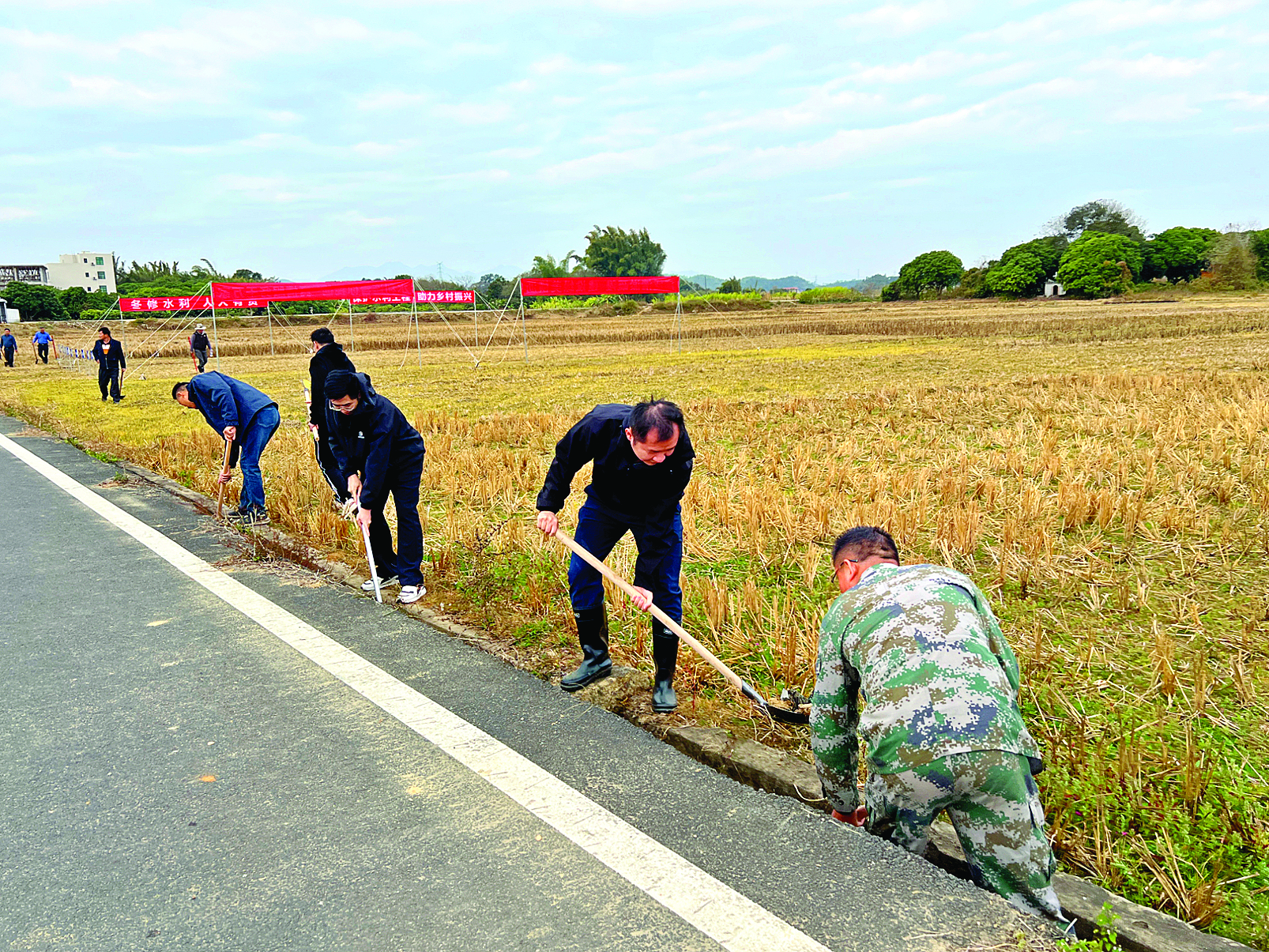 “黨員干部要發(fā)揮示范帶動作用,將冬修水利大會戰(zhàn)當(dāng)成自家事來做,從根本上解決農(nóng)田灌溉痛點、難點問題。”橫瀝鎮(zhèn)黨委副書記、鎮(zhèn)長楊劍犀表示,各村要做好水利設(shè)施養(yǎng)護(hù)和清淤疏浚,營造“人人參與”冬修水利的濃厚氛圍,確保良田灌溉無憂,防洪度汛安全無虞。