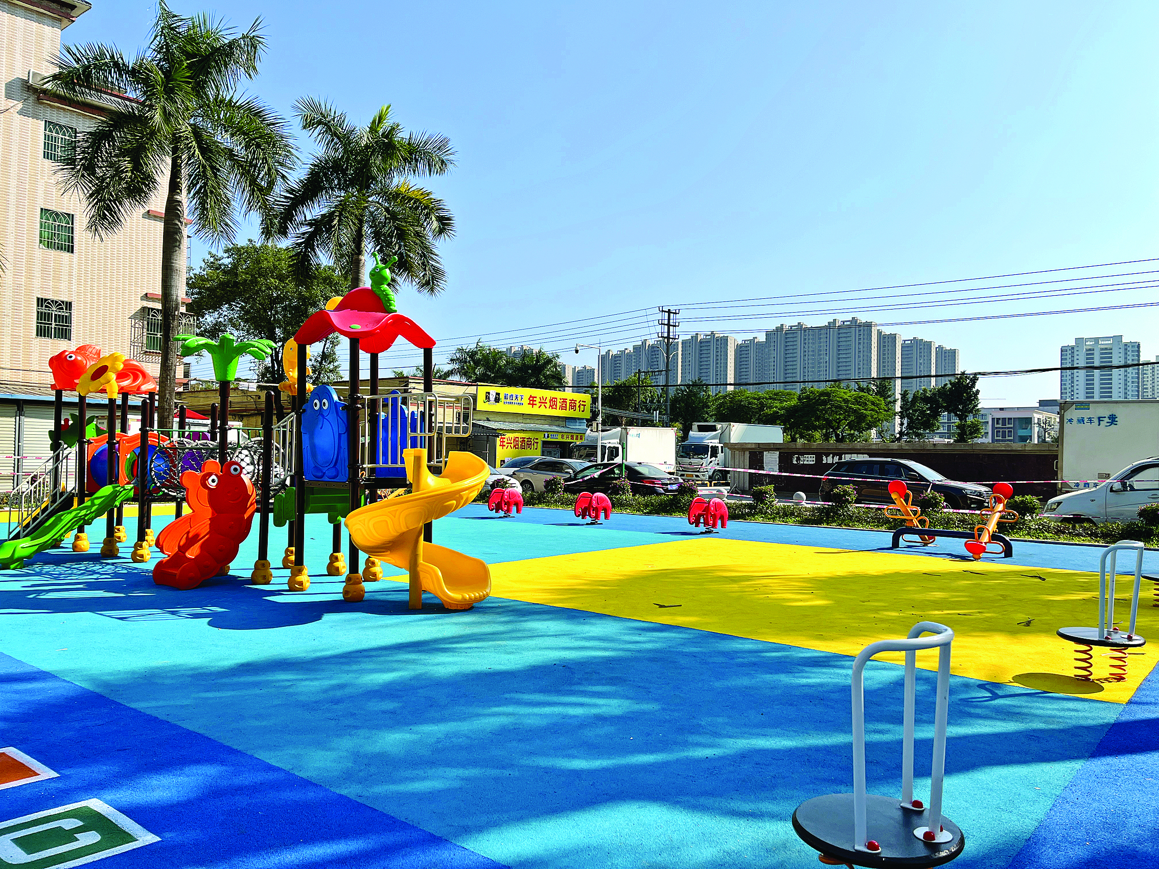 去年,聯(lián)和村委會(huì)按照綠美鄉(xiāng)村“六個(gè)一”標(biāo)準(zhǔn)進(jìn)行升級(jí)改造,將花壇改造為前廣場(chǎng),增加風(fēng)景石;原來(lái)的健身路徑改為兒童游樂(lè)場(chǎng),配置一批兒童游樂(lè)設(shè)施;安裝公園椅子,地板升級(jí)為EPDM塑膠顆粒面等。同時(shí)還升級(jí)了排水排污系統(tǒng),告別了過(guò)往逢雨必淹的歷史。