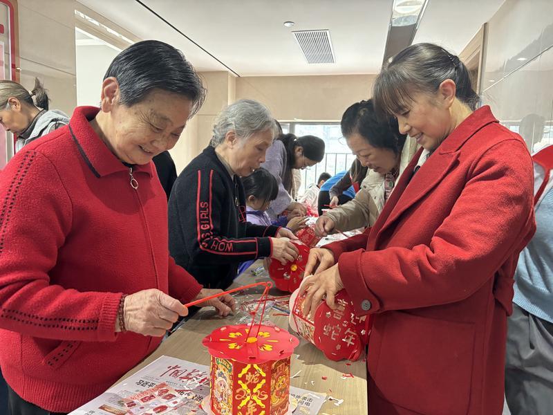 在拓“福”字制作區(qū),在志愿者的指引下,當(dāng)?shù)厝罕娺\(yùn)用鏤空模板、灑金紅宣紙、顏料、海綿刷等工具,動(dòng)手制作“福”字,體驗(yàn)民俗文化。在歡樂的氣氛中,一幅幅拓印著“招財(cái)進(jìn)寶”“福氣滿滿”“年年有余”等字樣的作品出現(xiàn)在眾人面前。
