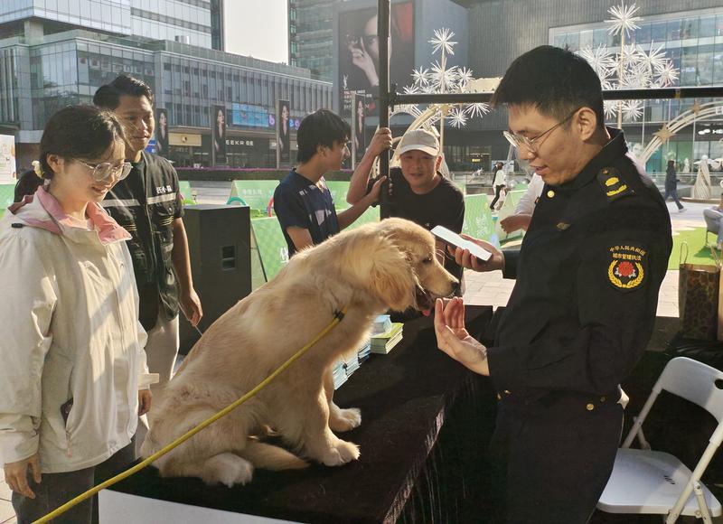 執(zhí)法人員進社區(qū)開展文明養(yǎng)犬宣傳。