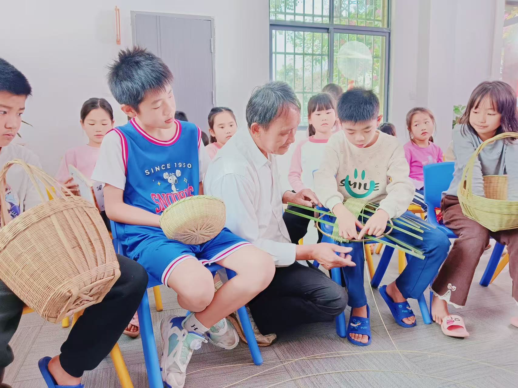 活動(dòng)中,東勝村竹編手藝人現(xiàn)場(chǎng)為孩子們示范劈篾、編織等技法,展示從選竹、破竹到編織的全流程。孩子們?cè)诶辖橙说南ば闹笇?dǎo)下,沉浸式體驗(yàn)竹籃、竹燈等工藝品的手工制作。黨員志愿者在現(xiàn)場(chǎng)生動(dòng)講解竹編歷史、分享匠人故事,引導(dǎo)孩子們感悟傳統(tǒng)技藝中蘊(yùn)含的工匠精神和非遺魅力。