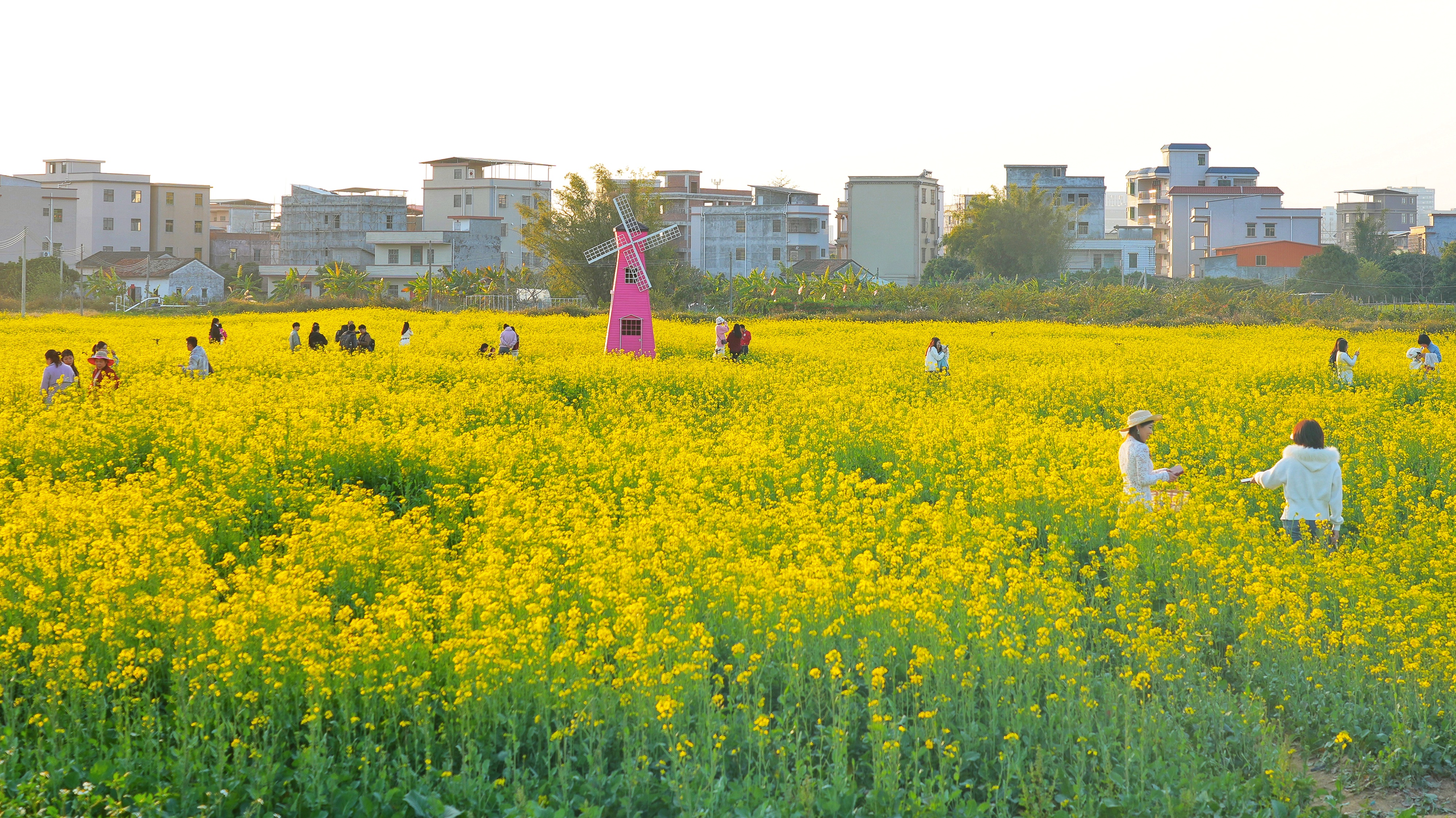 張村村油菜花海吸引眾多市民打卡。 惠州日?qǐng)?bào)記者朱金贊 攝