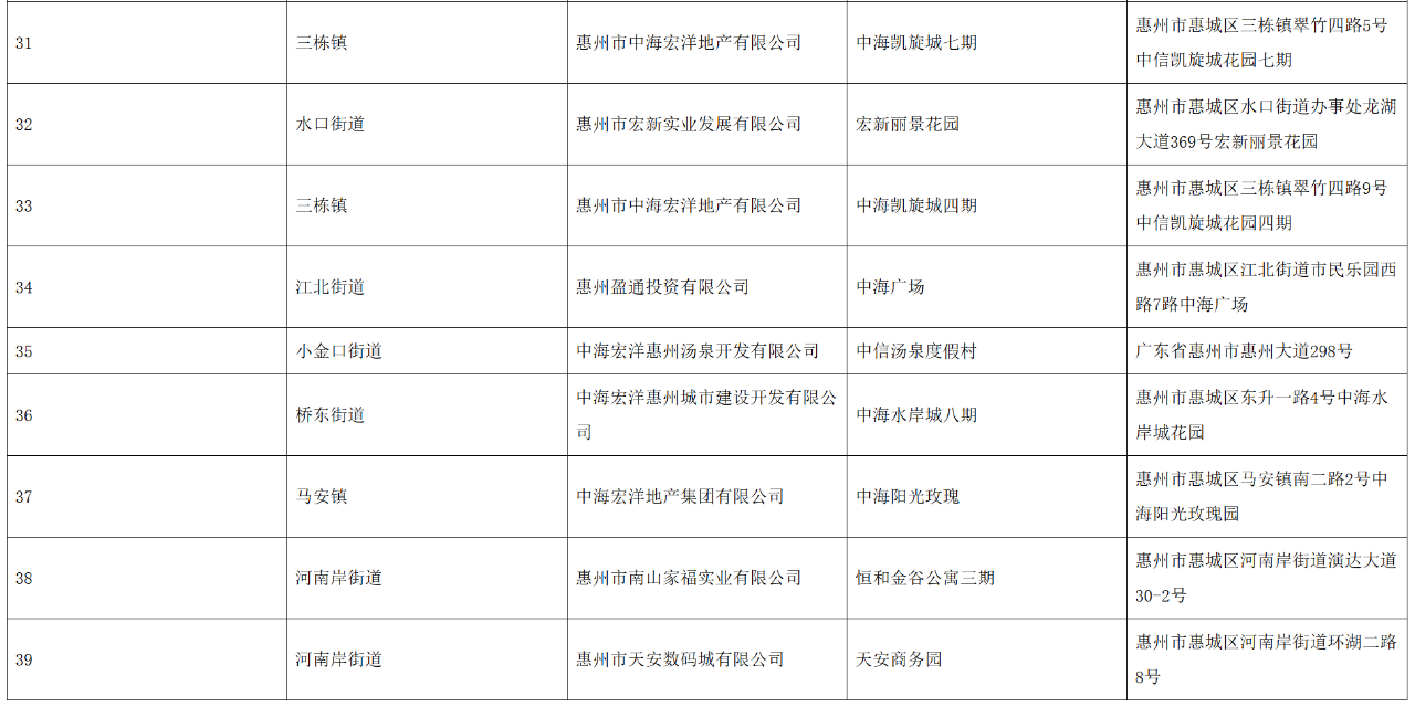 通知文件顯示,因房票房源信息會及時更新,詳細信息查詢,可登錄惠州市住房和城鄉(xiāng)建設(shè)局官網(wǎng)——房產(chǎn)信息交易版塊,微信掃碼登錄惠州市房地產(chǎn)交易市場綜合監(jiān)管平臺,進入房票房源查詢。從公布的名單來看,此次項目分布廣泛,涵蓋了小金口街道、三棟鎮(zhèn)、江南街道、橋東街道、馬安鎮(zhèn)、河南岸街道、龍豐街道、水口街道、江北街道等多個鎮(zhèn)街,囊括眾多熱門樓盤。詳細名單如下: