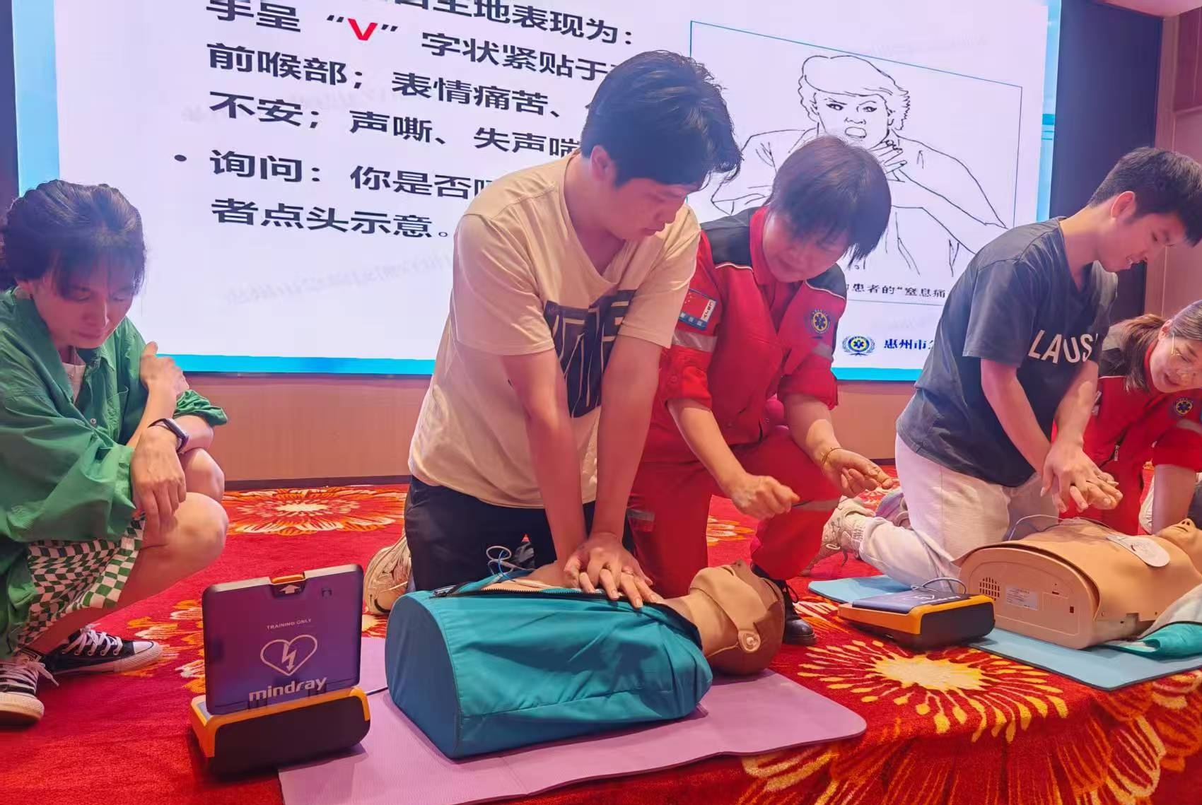 本次培訓(xùn)聚焦心肺復(fù)蘇、AED設(shè)備操作、運(yùn)動(dòng)損傷處理及氣道異物梗阻急救(海姆立克法)四大核心技能,構(gòu)建應(yīng)急救護(hù)“生命網(wǎng)”。培訓(xùn)特邀惠州市狼幫救援隊(duì)資深講師張榮坤擔(dān)任主講。課程采用“理論+實(shí)操+案例”三維教學(xué)模式進(jìn)行。