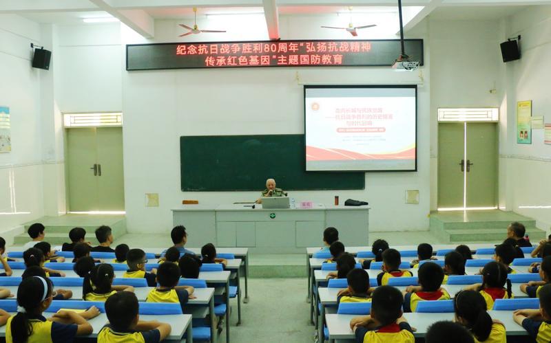 惠州日報訊 (記者謝菁菁 通訊員黃曉燕)9月3日,中國人民抗日戰(zhàn)爭暨世界反法西斯戰(zhàn)爭勝利80周年紀念日,惠城區(qū)龍豐街道武裝部聯(lián)合退役軍人服務(wù)站及市退役軍人老兵宣講團,在市第十一小學(xué)金榜分校開展“弘揚抗戰(zhàn)精神 傳承紅色基因”主題國防教育活動。市老兵宣講團成員雷亮與龍豐街道黨工委委員、武裝部部長李晚軍,為學(xué)生們帶來一堂深刻而生動的歷史課,通過重溫抗戰(zhàn)歷史,引導(dǎo)青少年一代銘記歷史、緬懷先烈,深化愛國主義教育。
