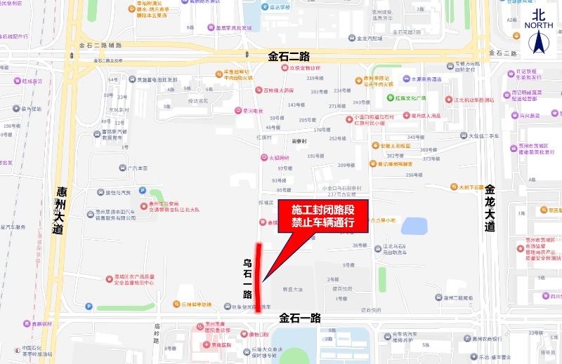 12月5日,記者從市公安局交管支隊獲悉,12月6日起至施工結(jié)束(共約60天),惠城區(qū)烏石一路(騰盛大廈西側(cè)路段,共約156米)臨時封閉,禁止車輛通行。車輛請通過周邊金石一路、金石二路、惠州大道、金龍大道等道路繞行。