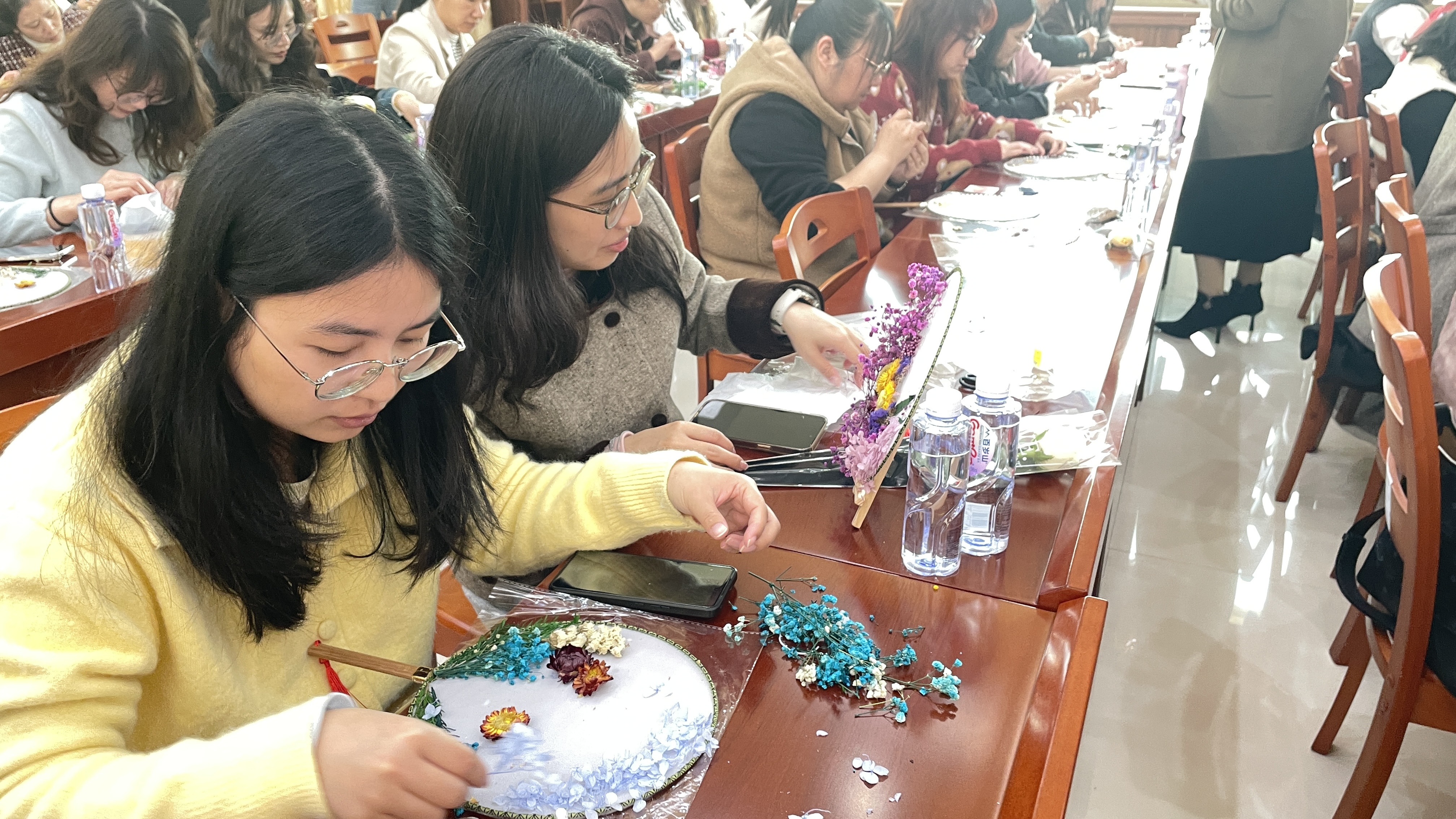 在核心環(huán)節(jié)“扇韻非遺美 綻放‘她’力量”DIY活動中,主持人現(xiàn)場講解團扇的歷史淵源、文化內(nèi)涵與制作技藝,帶領大家沉浸式感受非遺文化的獨特魅力。在場女性發(fā)揮巧思、動手創(chuàng)作,將匠心與創(chuàng)意融入扇面,在一粘一貼中制作出一把把獨具特色的非遺團扇,既體驗了手工創(chuàng)作的樂趣,也傳承了中華優(yōu)秀傳統(tǒng)文化。