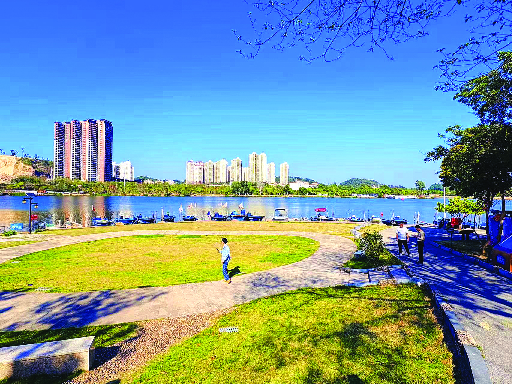 “來了七聯(lián)村,春天來得更早了。”來自黑龍江哈爾濱的遲浩天,開著一輛“黑A”牌照的房車在惠城區(qū)江南街道七聯(lián)村津頭湖住了三個月。與仍是寒風凜冽的黑龍江不同,當他清晨推開房車車門,暖陽穿過新發(fā)的美麗異木棉枝葉,灑在江邊的綠地上。
