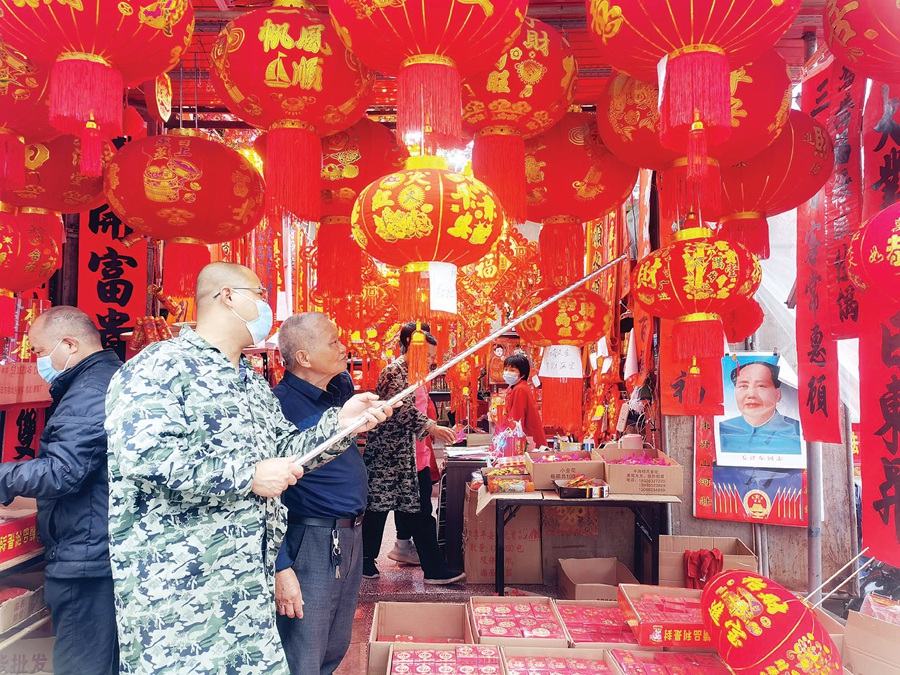 惠州日?qǐng)?bào)訊 (記者藍(lán)斐菲)春節(jié)臨近,惠東縣城年味漸濃。日前,記者在縣城街尾井看到,整條街都被年貨裝扮得紅紅火火,大紅燈籠、利市封、春聯(lián)應(yīng)有盡有,濃濃的年味撲面而來(lái)。