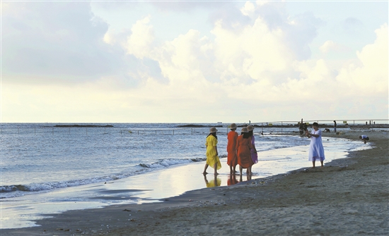 海邊的游客享受著踏浪踩沙的樂趣 張衛(wèi)中 攝