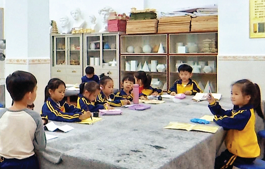 平山中心小學(xué)學(xué)生在上書法課。