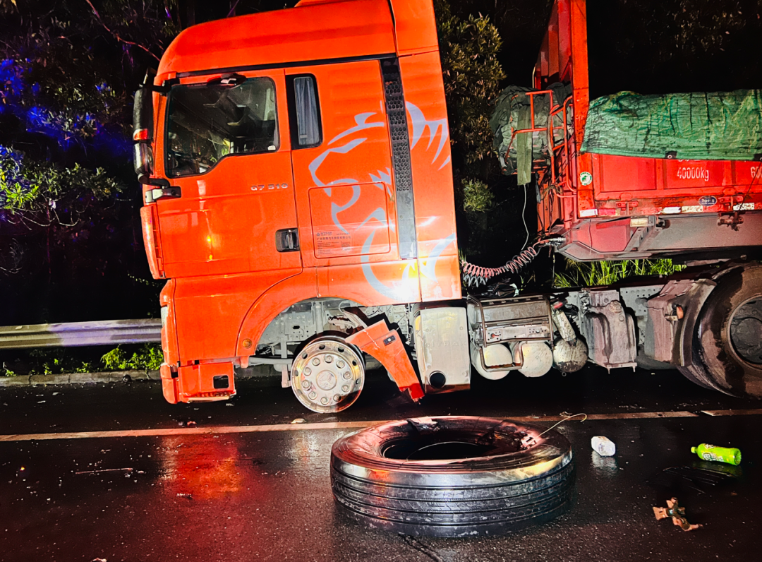 經(jīng)了解,由于夜晚雨天道路濕滑且視線不足,貨車司機(jī)在道路上遇前方緊急情況緊急避讓,導(dǎo)致追尾另一道路貨車。