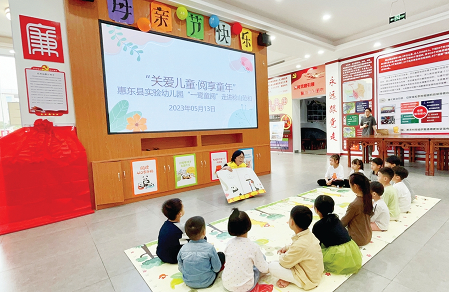 惠州日報訊 (記者洪鵲兒 特約通訊員林德勝)為推廣全民閱讀,培養(yǎng)孩子的閱讀興趣,營造親子共讀的氛圍,5月13日下午,稔山鎮(zhèn)范和村黨群服務(wù)中心開展“關(guān)愛兒童,閱享快樂”全民閱讀下鄉(xiāng)志愿服務(wù)活動。此次活動由惠東縣黨群服務(wù)中心主辦,惠東縣實驗幼兒園志愿服務(wù)隊承辦。