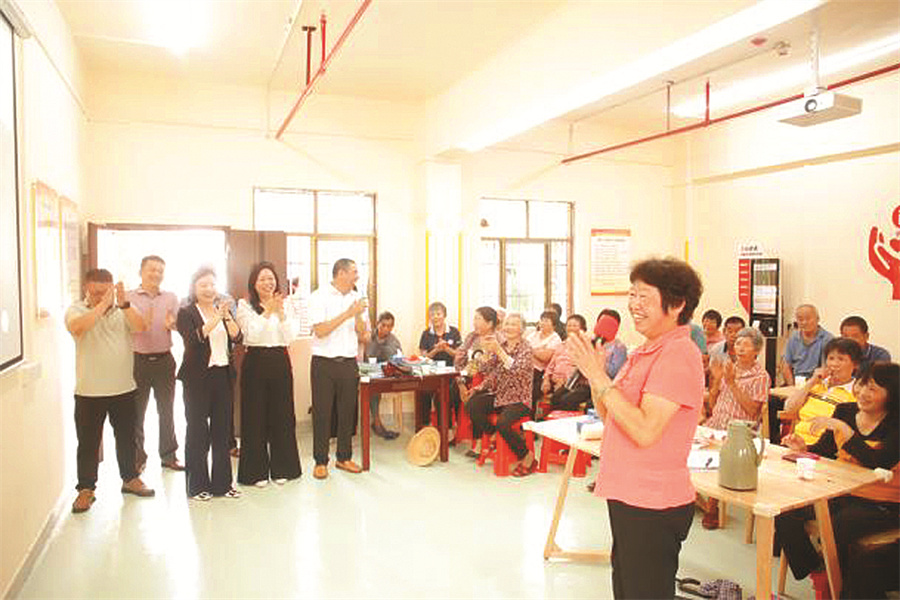 老人在長者照護之家表演節(jié)目。惠州日報記者洪鵲兒 攝