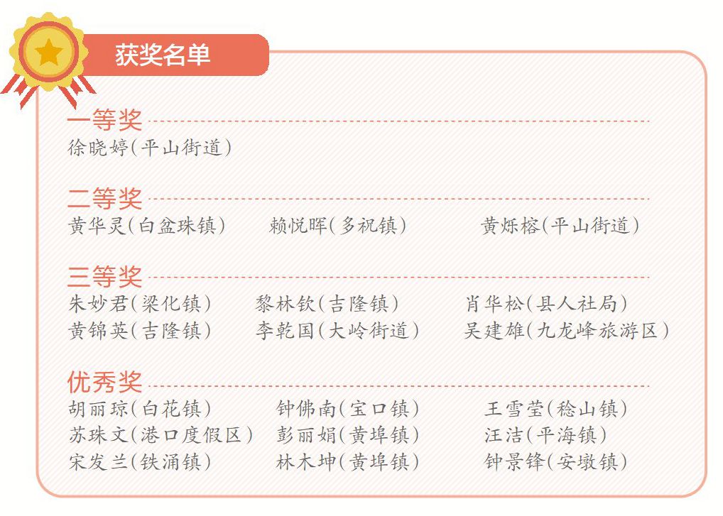 經(jīng)各鎮(zhèn)(街)評(píng)選推薦,來(lái)自鎮(zhèn)(街)或縣直部門的19名鄉(xiāng)音宣講員緊密結(jié)合鄉(xiāng)村振興、項(xiàng)目建設(shè)、基層治理等重點(diǎn)工作,通過(guò)PPT演示、短視頻等方式進(jìn)行現(xiàn)場(chǎng)演講,宣講內(nèi)容緊扣黨的二十大精神,將黨的理論結(jié)合個(gè)人專業(yè)特長(zhǎng)或工作經(jīng)歷,用分析案例、綜合分析等方式呈現(xiàn)。專家評(píng)委和大眾評(píng)委逐一進(jìn)行打分。經(jīng)過(guò)激烈角逐,平山街道徐曉婷獲得一等獎(jiǎng)。