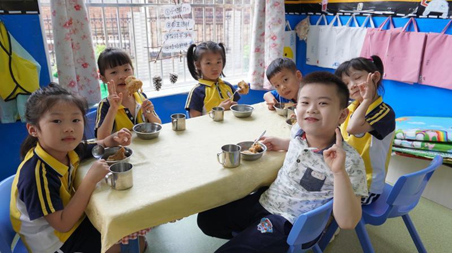惠東縣直屬機關(guān)幼兒園學生正在吃下午茶。