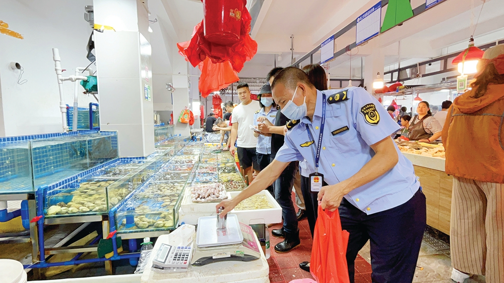 執(zhí)法人員在惠東港口濱海旅游度假區(qū)的海鮮市場(chǎng)開展“清秤大行動(dòng)”。惠州日?qǐng)?bào)記者洪鵲兒 攝