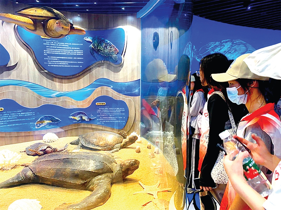 學(xué)員們走進(jìn)海龜科普館,學(xué)習(xí)如何保護(hù)生態(tài)環(huán)境。惠州日報(bào)記者藍(lán)斐菲 通訊員郭福娜 攝