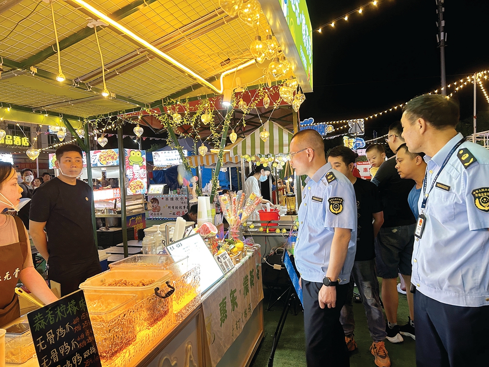 多部門聯合檢查夜市食品安全。 惠州日報記者藍斐菲 通訊員萬亮亮 攝